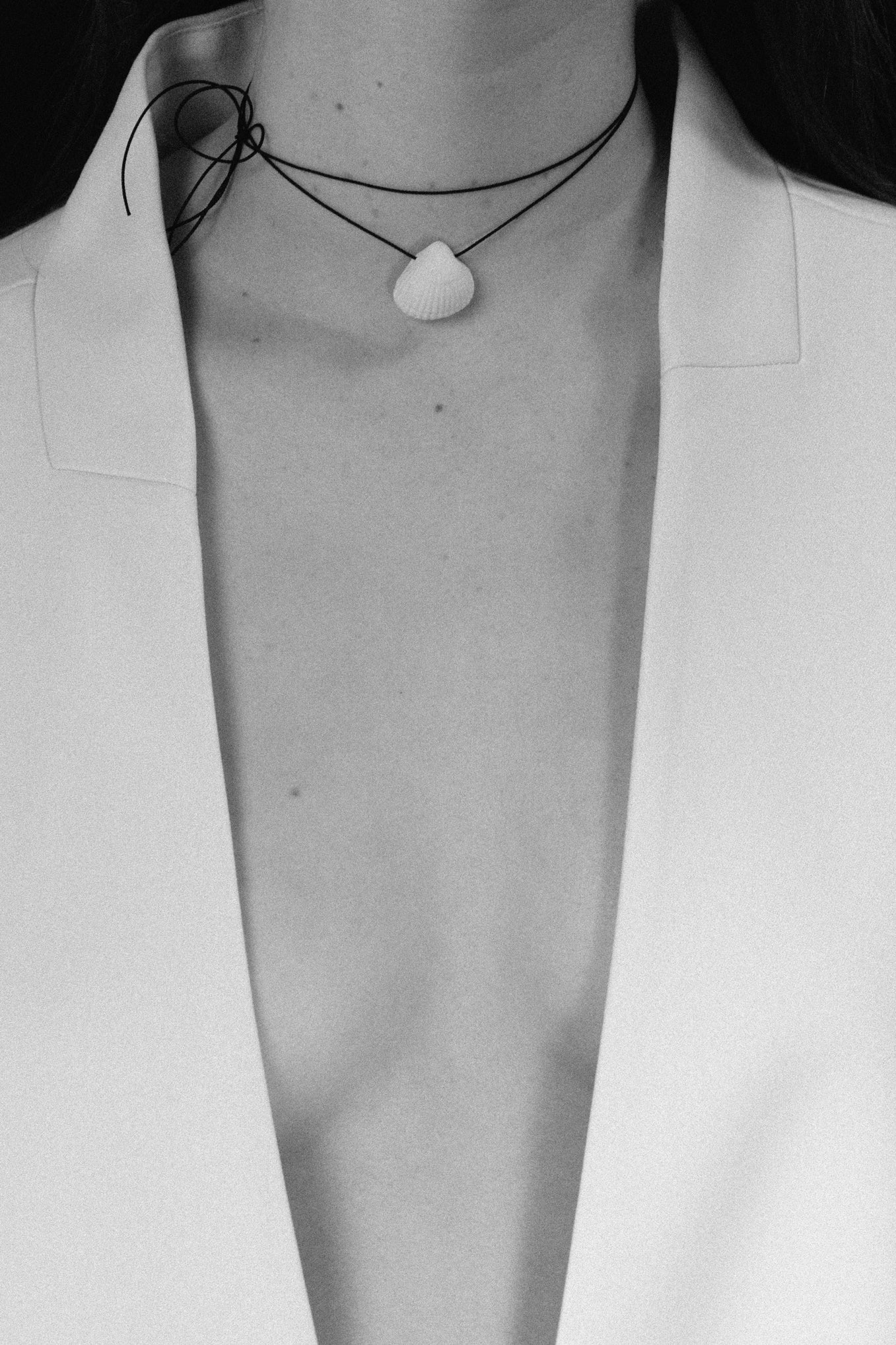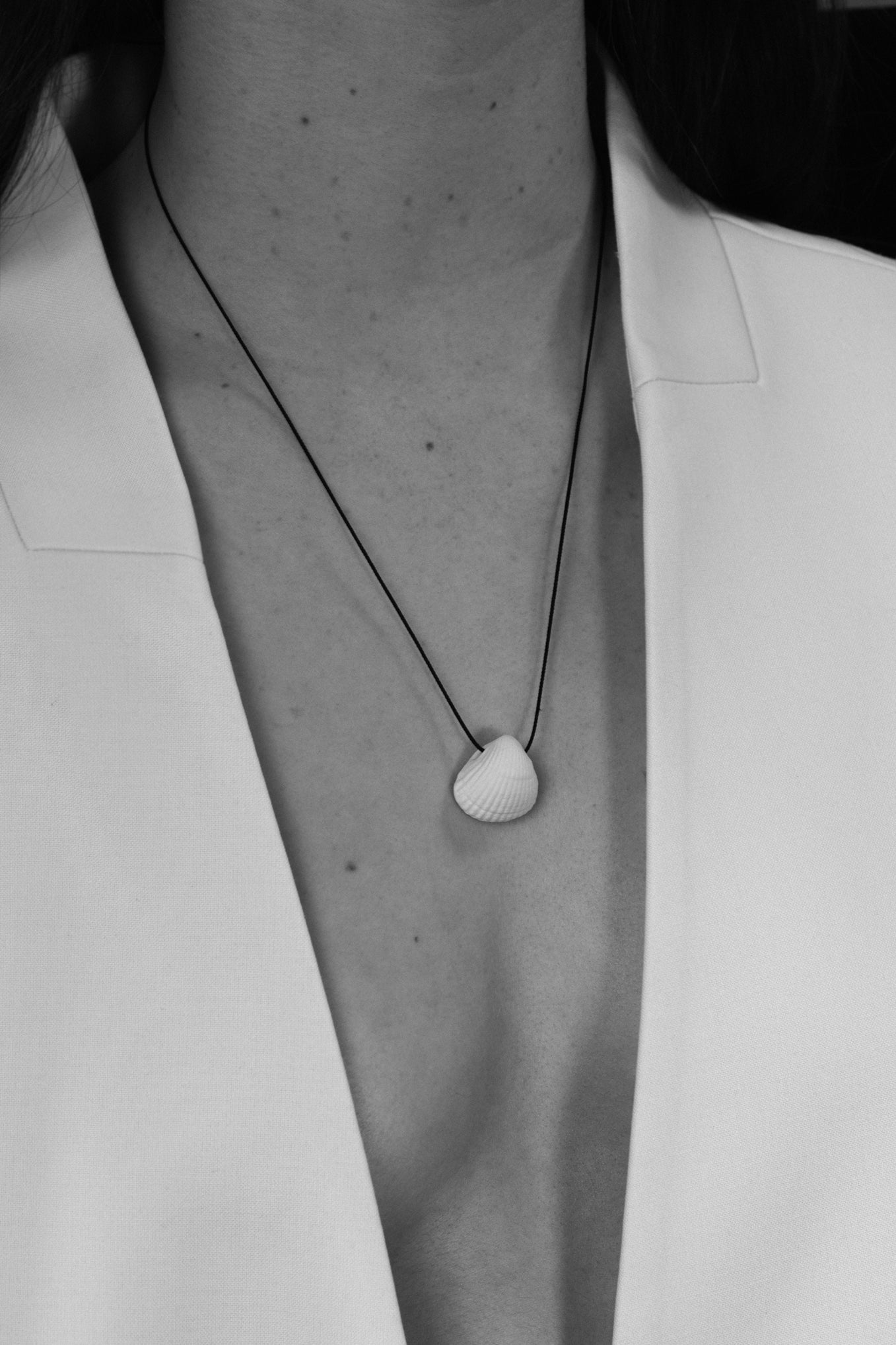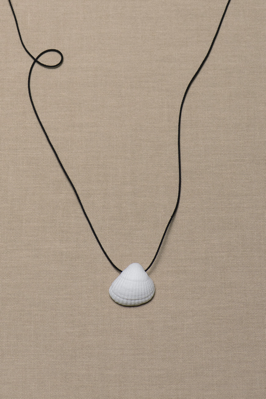 Hand picked from the sea, turned into timeless porcelain, strung on handwoven black Japanese silk.