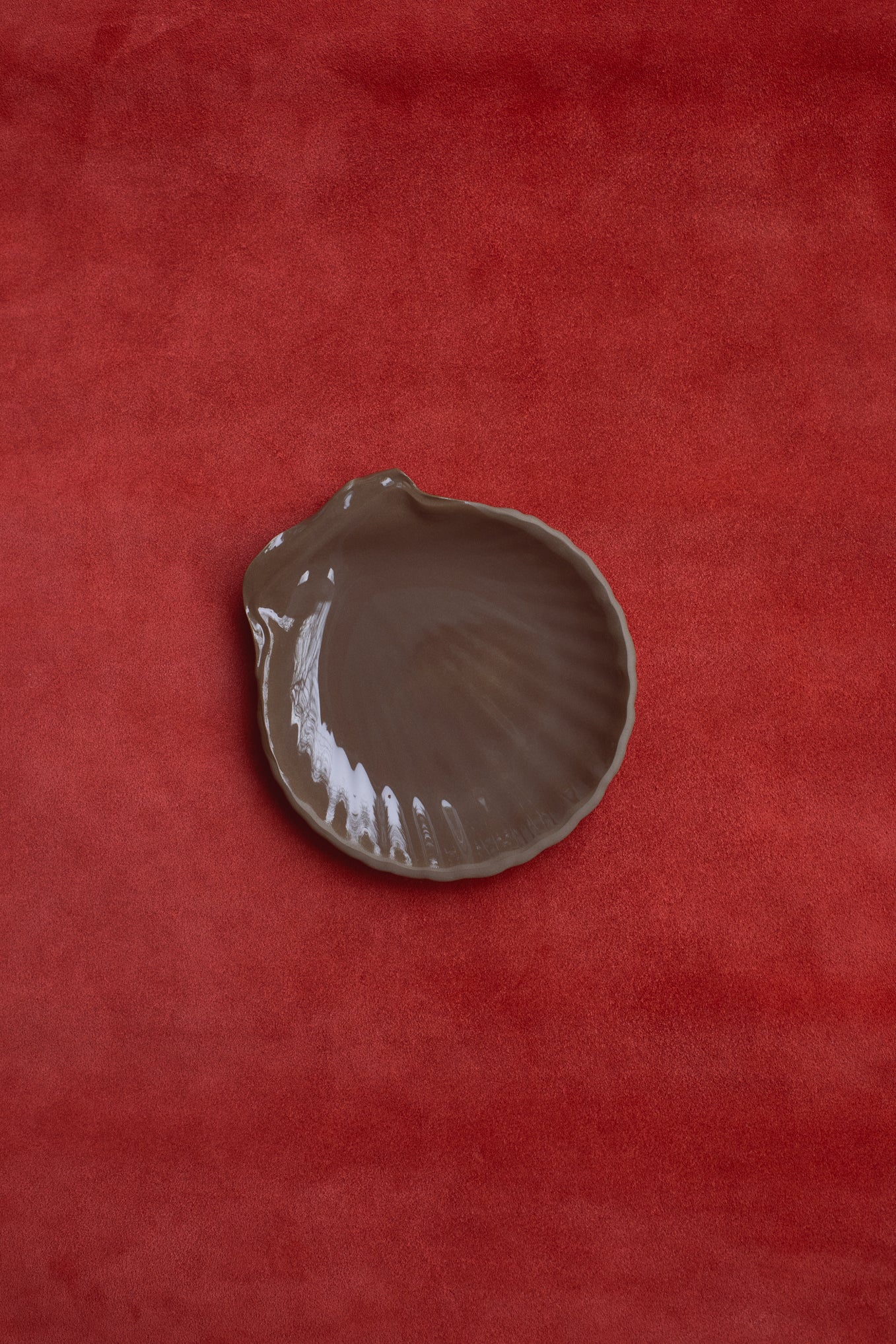 SHELL PORCELAIN DISH, PEBBLE BROWN