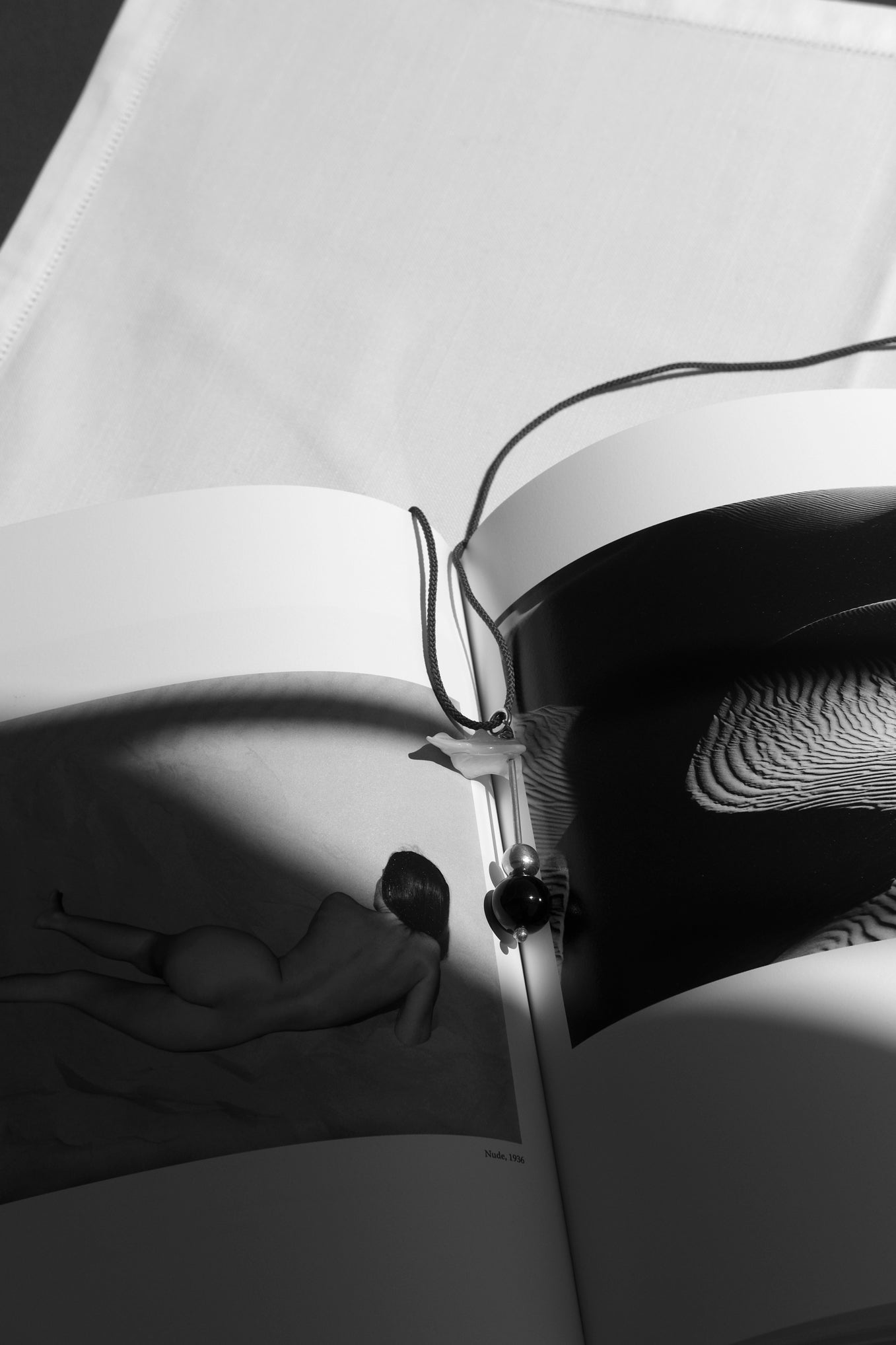 - Silk, Sterling silver, Onyx, Mother of Pearl